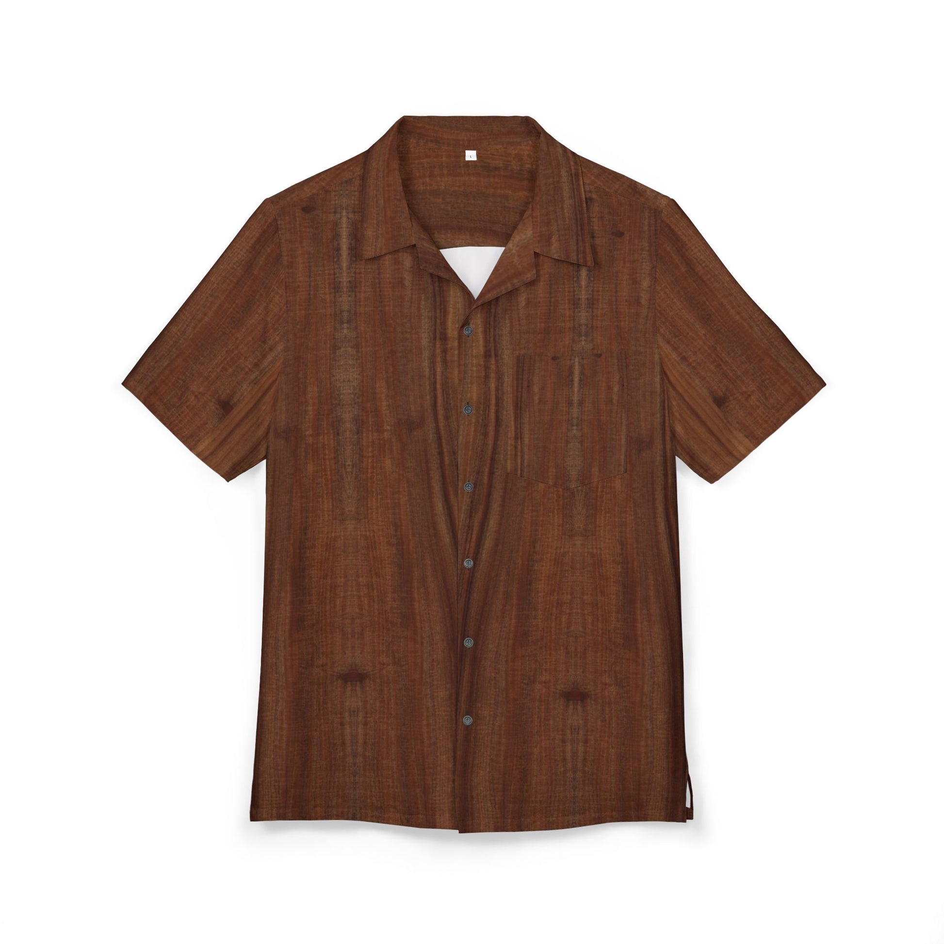 Woodgrain Hawaiian Shirt — Tropical Brown Button-Down